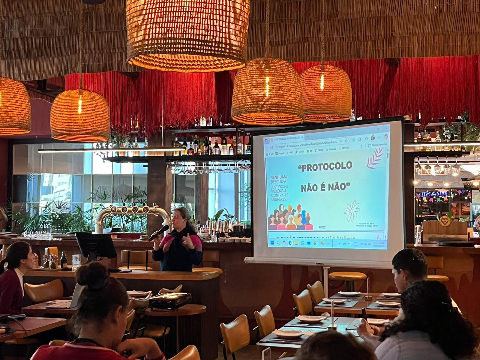 Quem conduziu a formação mais recente foi a advogada Ana Carolina Mack, responsável pelo compliance do restaurante. “A capacitação não é só uma cartilha, é uma conversa real com a equipe. O protocolo precisa ser praticado todos os dias, e por isso ele também está visível em nossos espaços: no banheiro feminino e no hall de entrada”, explica.
