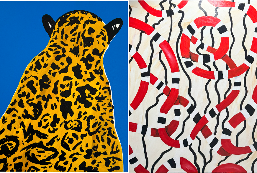 Suas peças também são marcadas por referências à fauna e flora brasileira, refletindo um diálogo entre arte e natureza. As pinturas são um convite à interpretação individual.